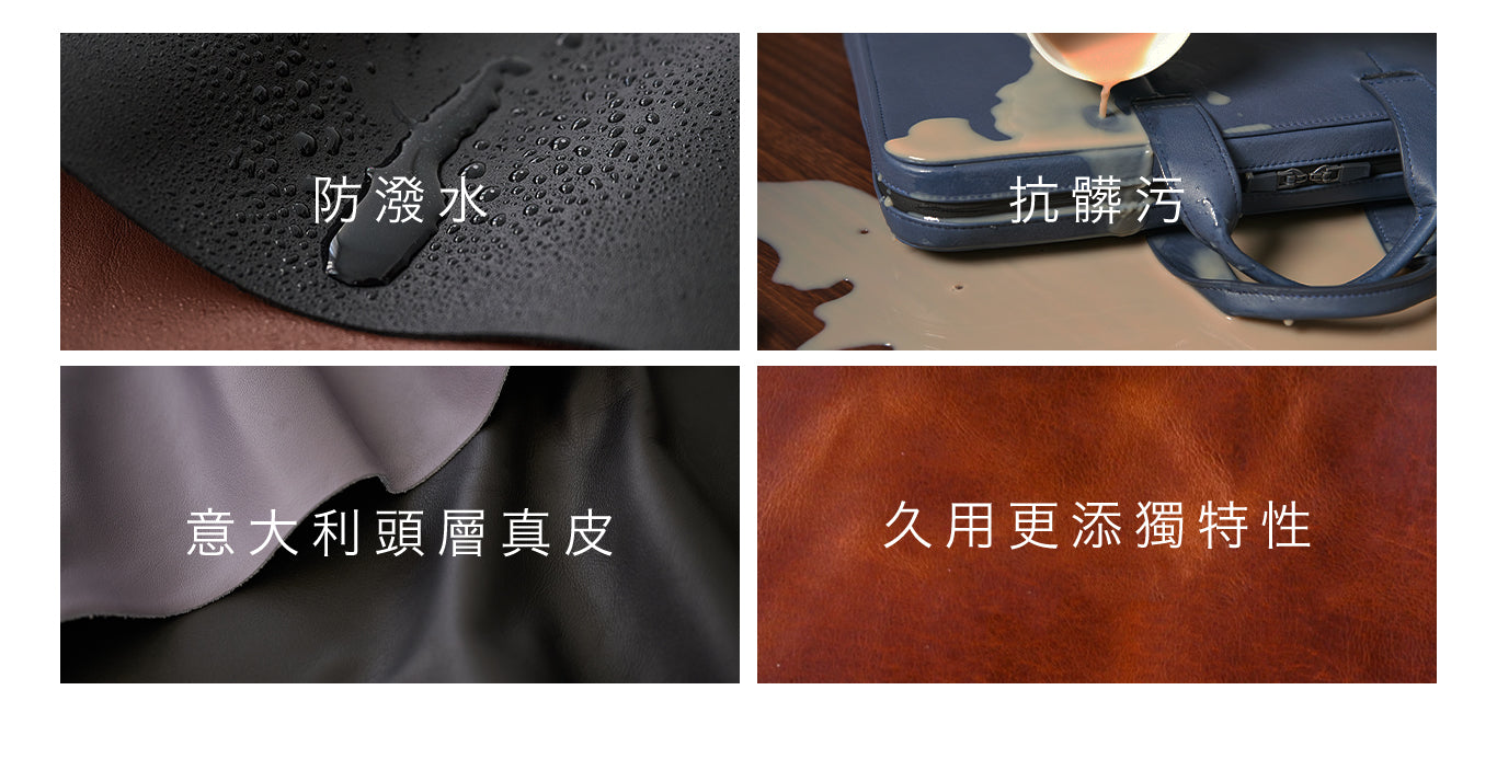嚴選義大利頂級植鞣革,用最天然及對環境最沒有傷害的皮革染色工法製成。以皮革為主角,著重簡約自然之美與溫潤細緻手感,隨時間使用能感受舊化魅力,充滿故事性與個人化。為貼近不同使用者個性與習慣,更運用多種選料素材,呈現不一樣的品味觸覺。