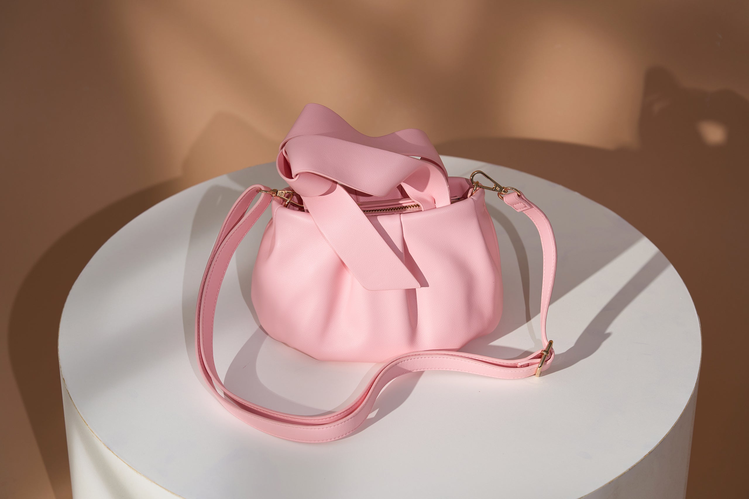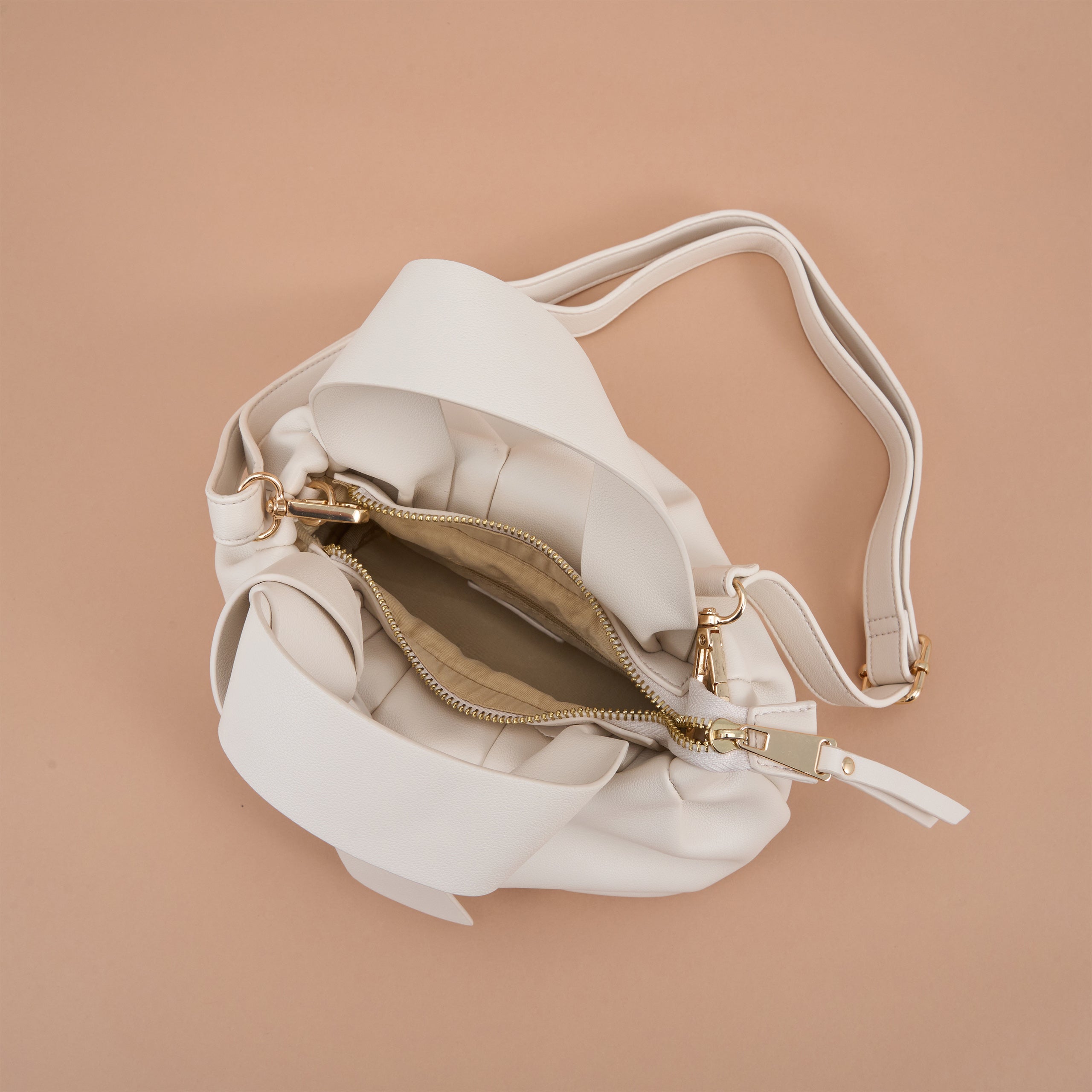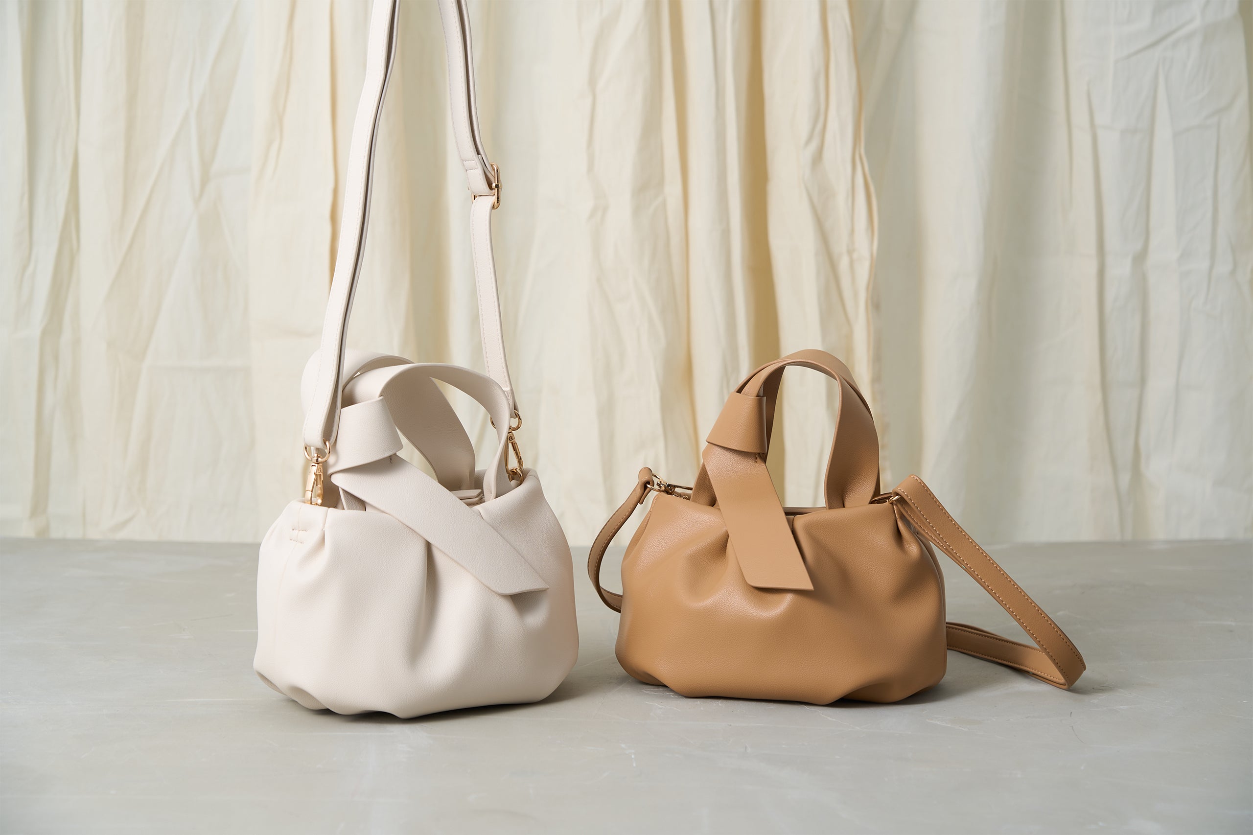 把專屬妳的可愛揹上身!以扭結與抓皺設計妝點,在底部加入折疊細節,整體呈現輕盈蓬鬆。無論手提的優雅或斜背的便利,都讓造型充滿精緻風采。